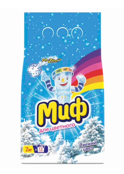 3в1 - ЧИСТОТА, СВЕЖЕСТЬ, ЭКОНОМИЯ! Миф и его формула 3в1 поможет вам справиться с такой сложной задачей, как стирка для всей семьи. Он прекрасно удалит пятна, придаст свежесть вашим вещам и сэкономит семейный бюджет! И всё это в одной пачке. Вся семья будет счастлива! Чистота, свежесть, аромат – умная стирка без лишних затрат! Формула 3в1 имеет ряд преимуществ: великолепное удаление пятен, свежий аромат, отличная цена. Благодаря Мифу больше нет необходимости тратить лишние деньги, чтобы Ваши вещи были чистыми и свежими!