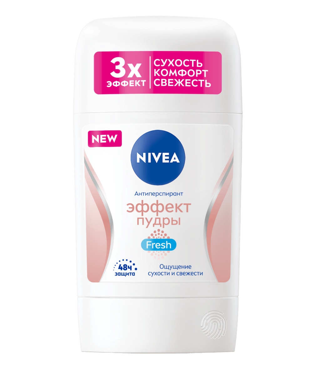 Антиперспирант-стик с новой эмульсионной технологией для бережной защиты и деликатного нанесения. Обеспечивает чувство свежести на коже подмышек. С каолиновой пудрой для ощущения мягкой кожи. Помогает восстановить кожу до натурального тона: Антиперспирант-стик NIVEA Эффект Пудры.