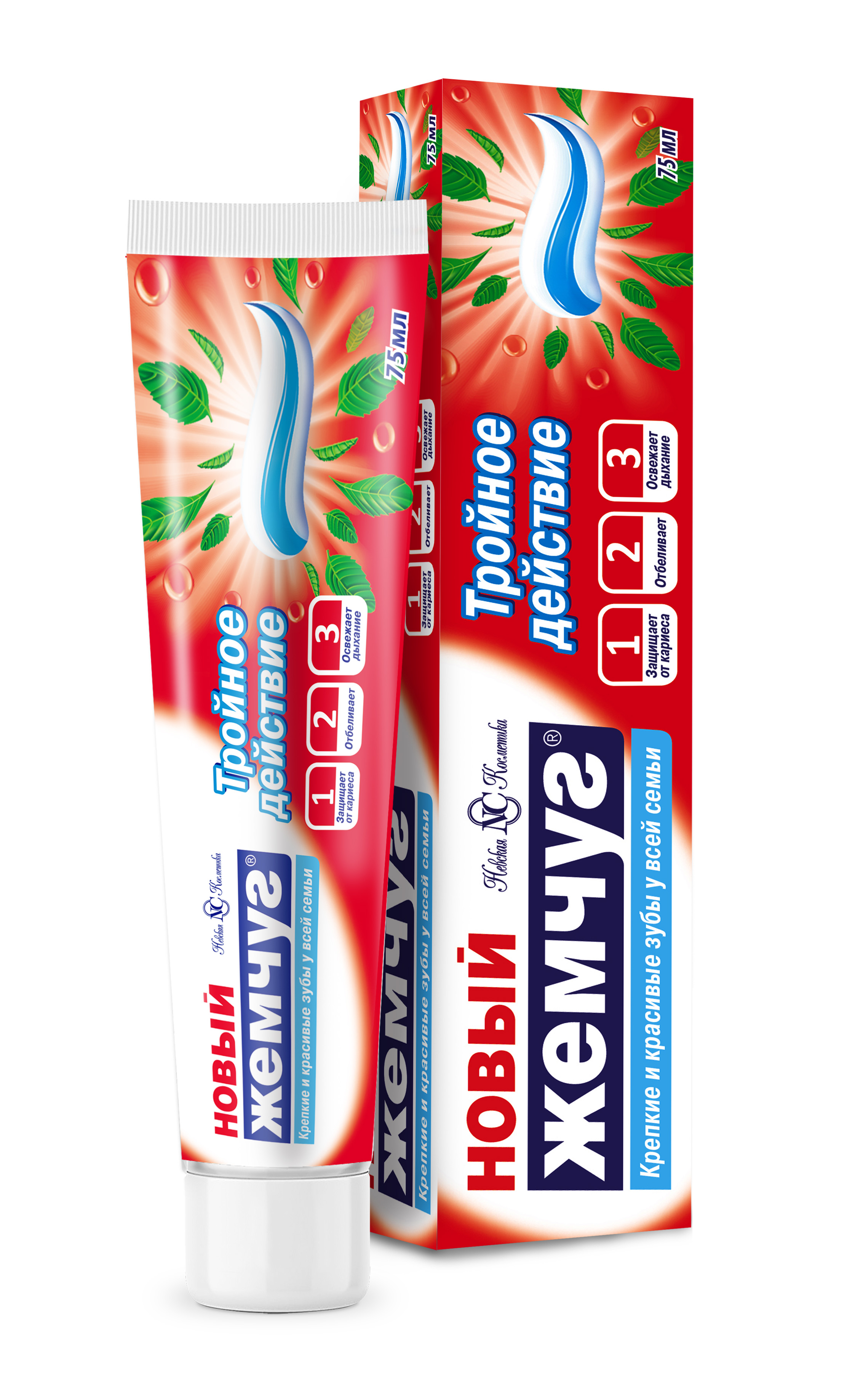 Новый жемчуг Зубная паста Тройное действие, 75мл