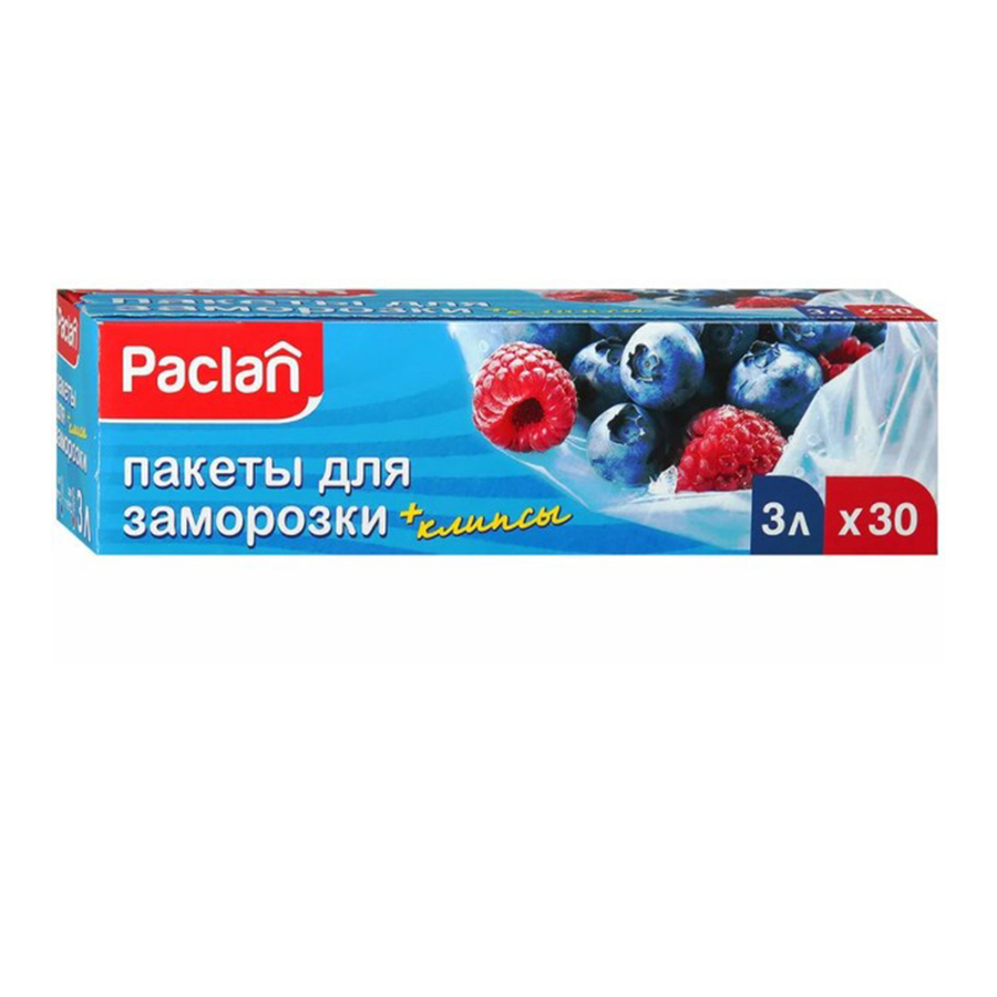 Пакеты Paclan для заморозки с клипсами для закрывания и полем для надписей 3л*30шт.