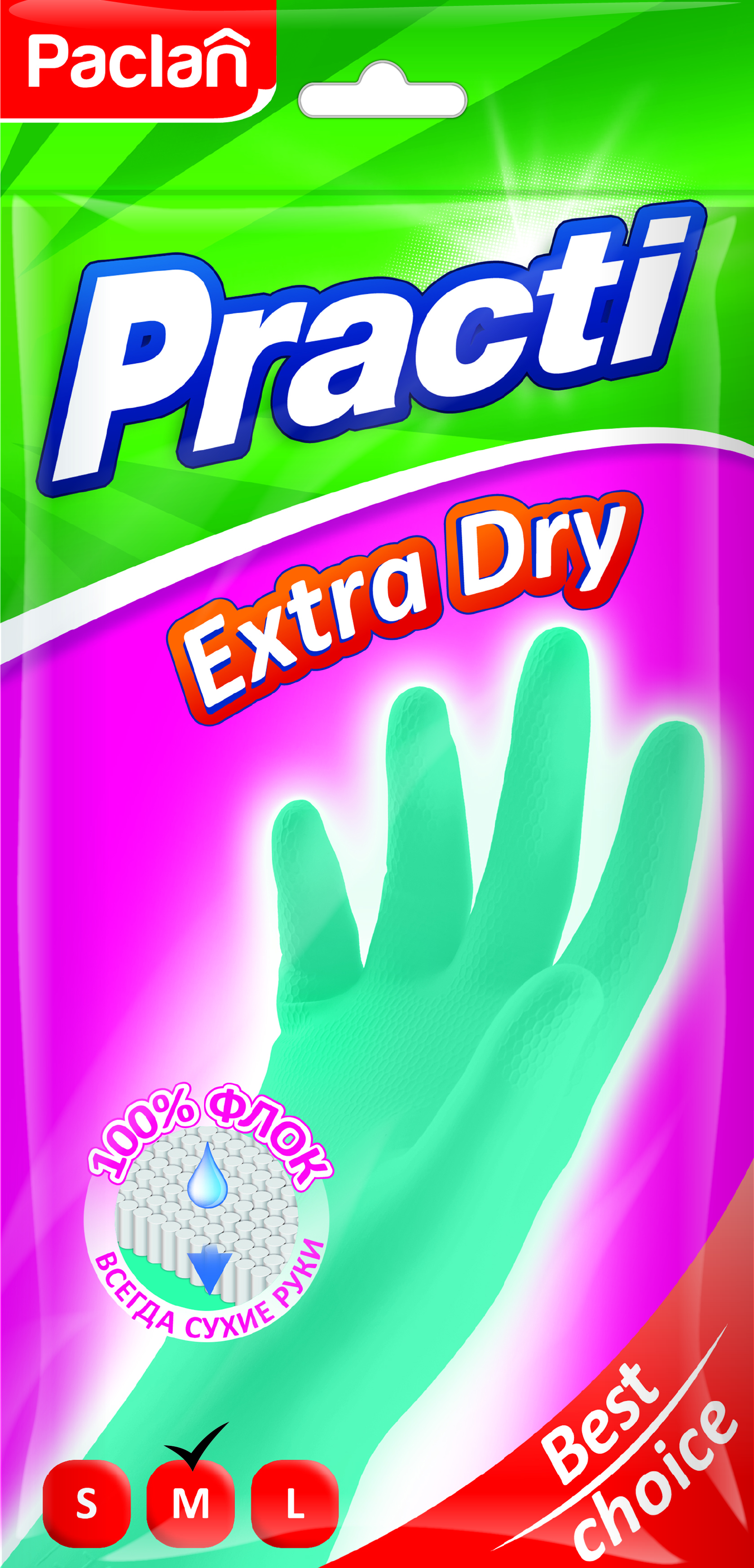 Paclan Перчатки резиновые Extra Dry P, M пара