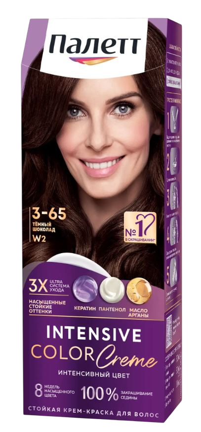 Формула с высокоинтенсивными пигментами проникает глубоко внутрь волоса, защищая цвет от вымывания. Стойкий насыщенный цвет надолго и превосходное закрашивание седины*. Формула и маска-уход с тройной системой ухода с кератином, пантенолом и nutri-маслом обеспечивают бережную заботу о волосах. Palette укрепляет, разглаживает волокна волос и наполняет их цветом для роскошного стойкого оттенка. - Защита от вымывания цвета - Экстрауход во время и после окрашивания - Превосходное закрашивание седины* * Этот оттенок подходит для волос, содержащих до 70% седины.