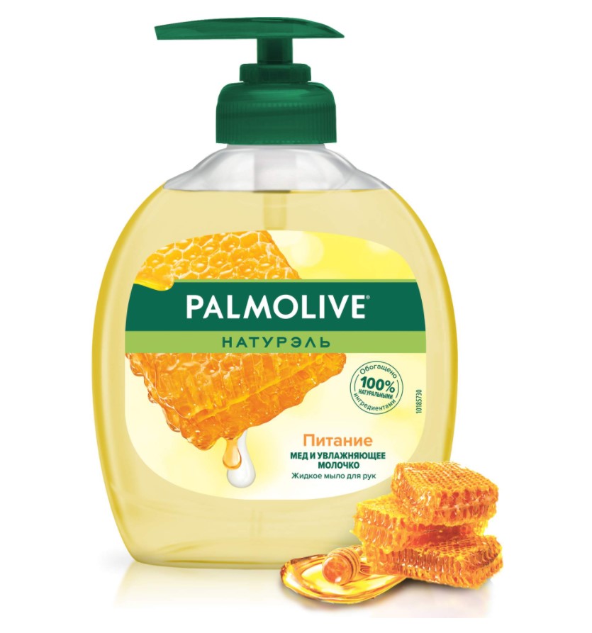 Жидкое мыло Palmolive «Натурэль Питание» . Бархатистая формула способствует питанию Вашей кожи и дарит ей ощущение необыкновенной мягкости и шелковистости. Формула обогащена экстрактом мёда и увлажняющим молочком. Нейтральный pH.