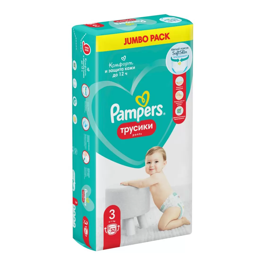 Подгузники-трусики Pampers Pants Midi (6-11 кг), 52 штук для активных и подвижных мальчиков и девочек, которые постоянно вертятся или ползают.