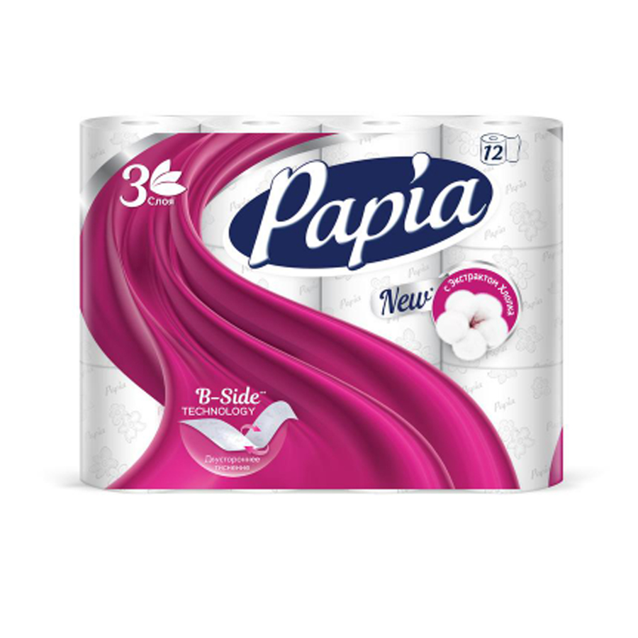 Papia Туалетная бумага Белая 3-слойная 12шт