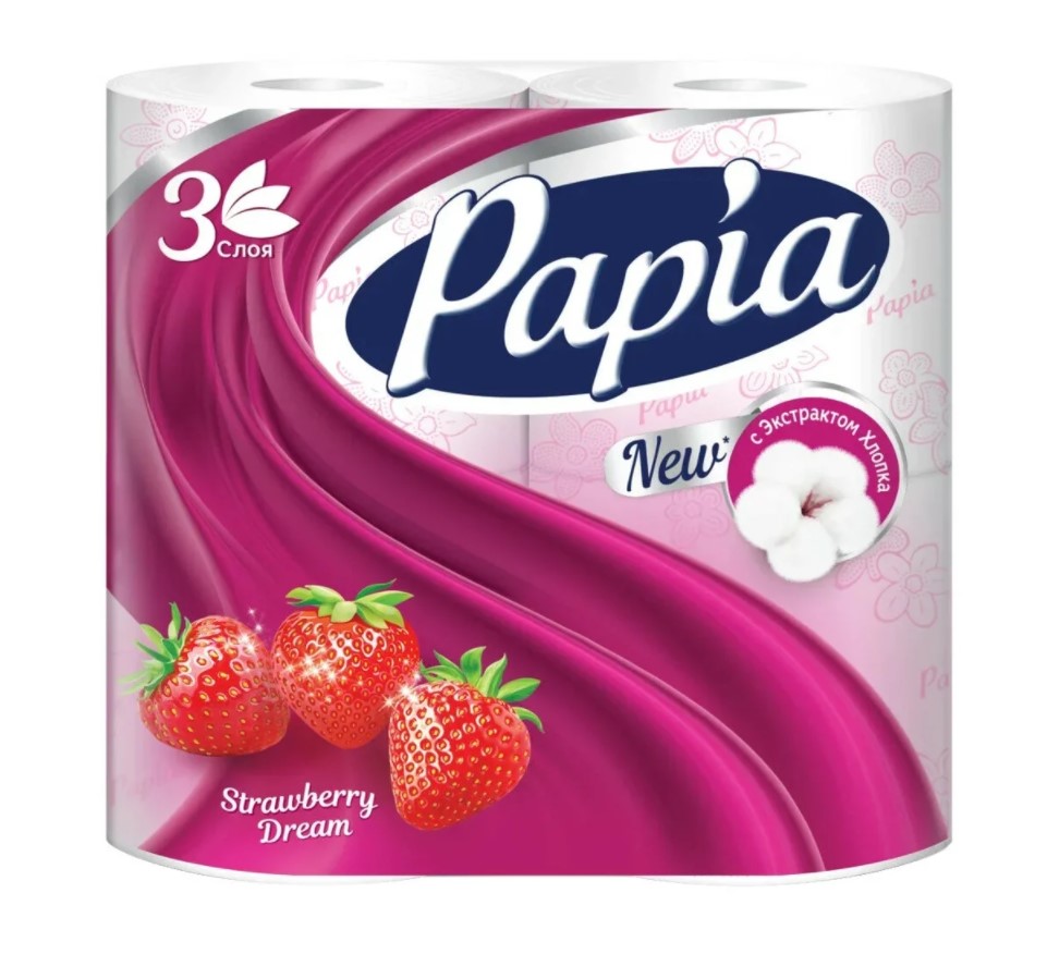 Papia Туалетная бумага Клубничная мечта 3-слойная 4шт