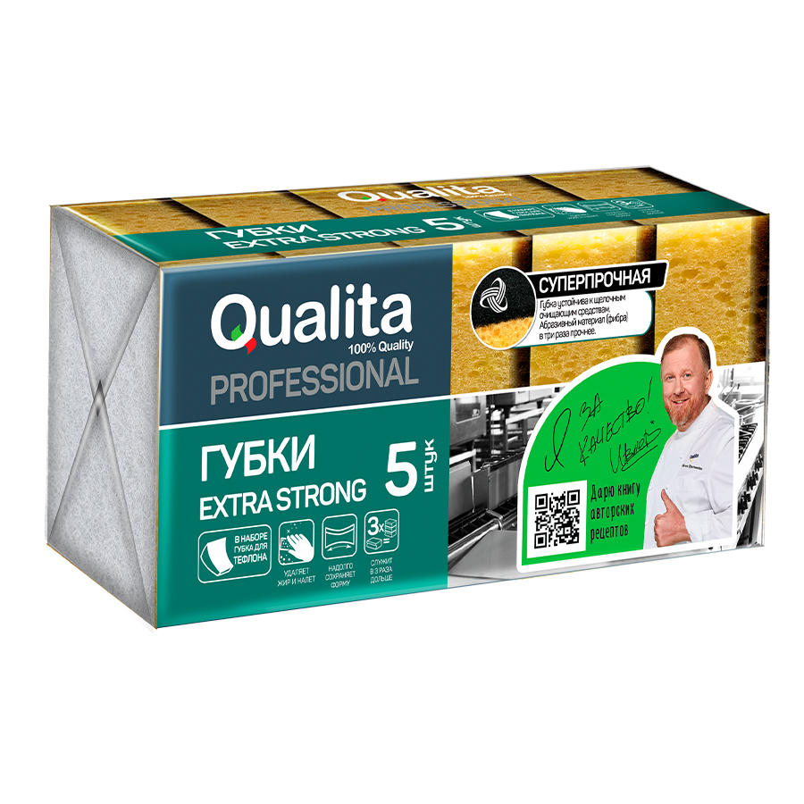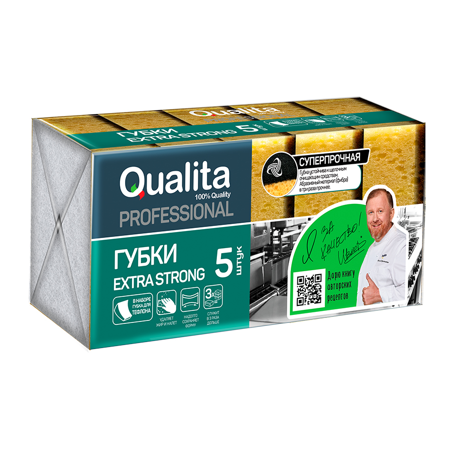 QUALITA Губки кухонные EXTRA STRONG 5шт