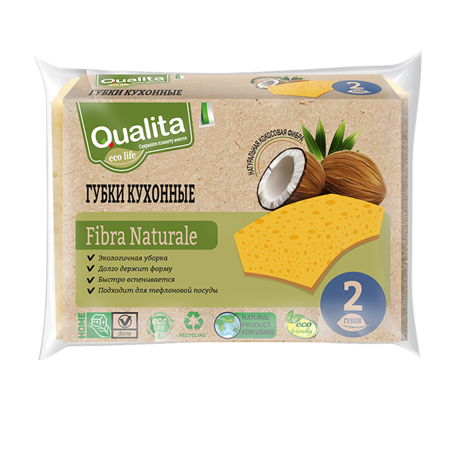 QUALITA Губки кухонные FIBRA NATURALE Eco life 2шт