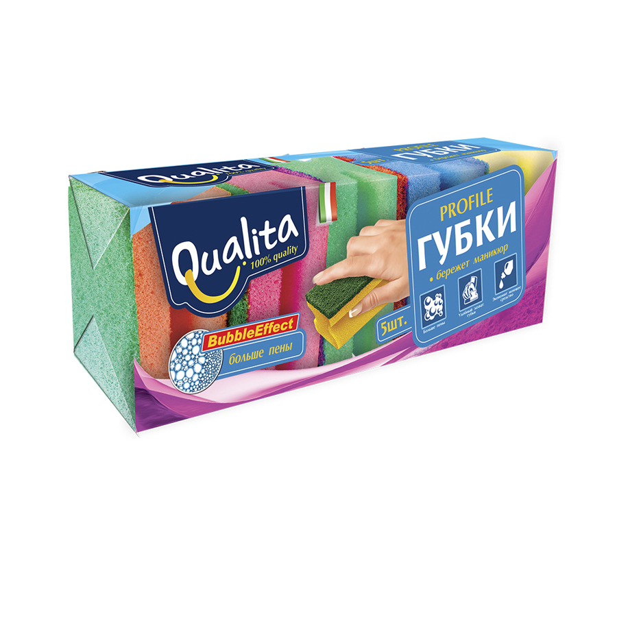 Уникальная закрытая структура ячеек поролона препятствует вымыванию моющего средства, что приводит к его экономии. Удобные профильные вырезы позволяют удобно держать губку, защищая руки и маникюр хозяйки. ПАВ-добавка в составе поролона увеличивает пенообразование, увеличенный размер губки способствует комфортному использованию.