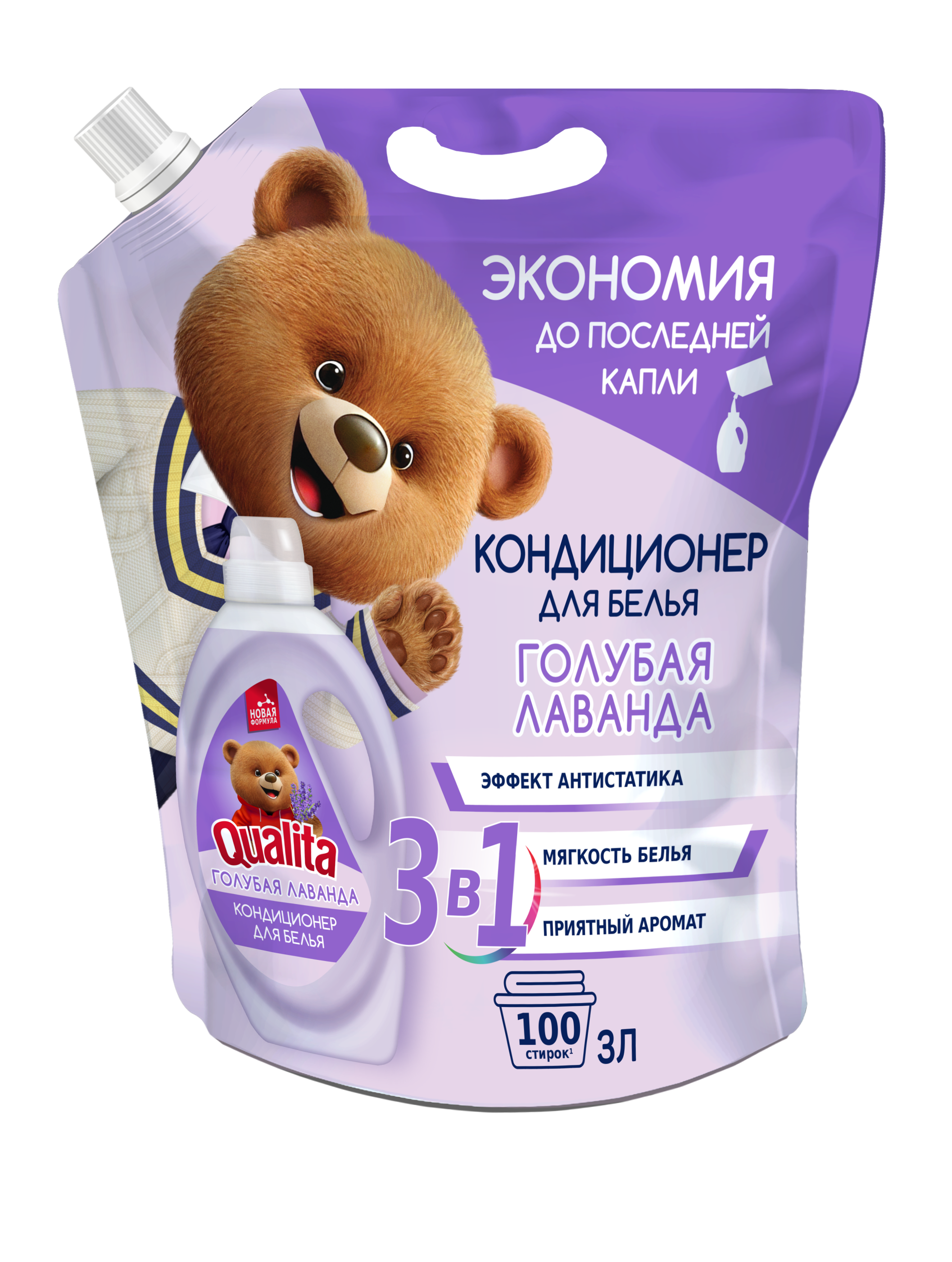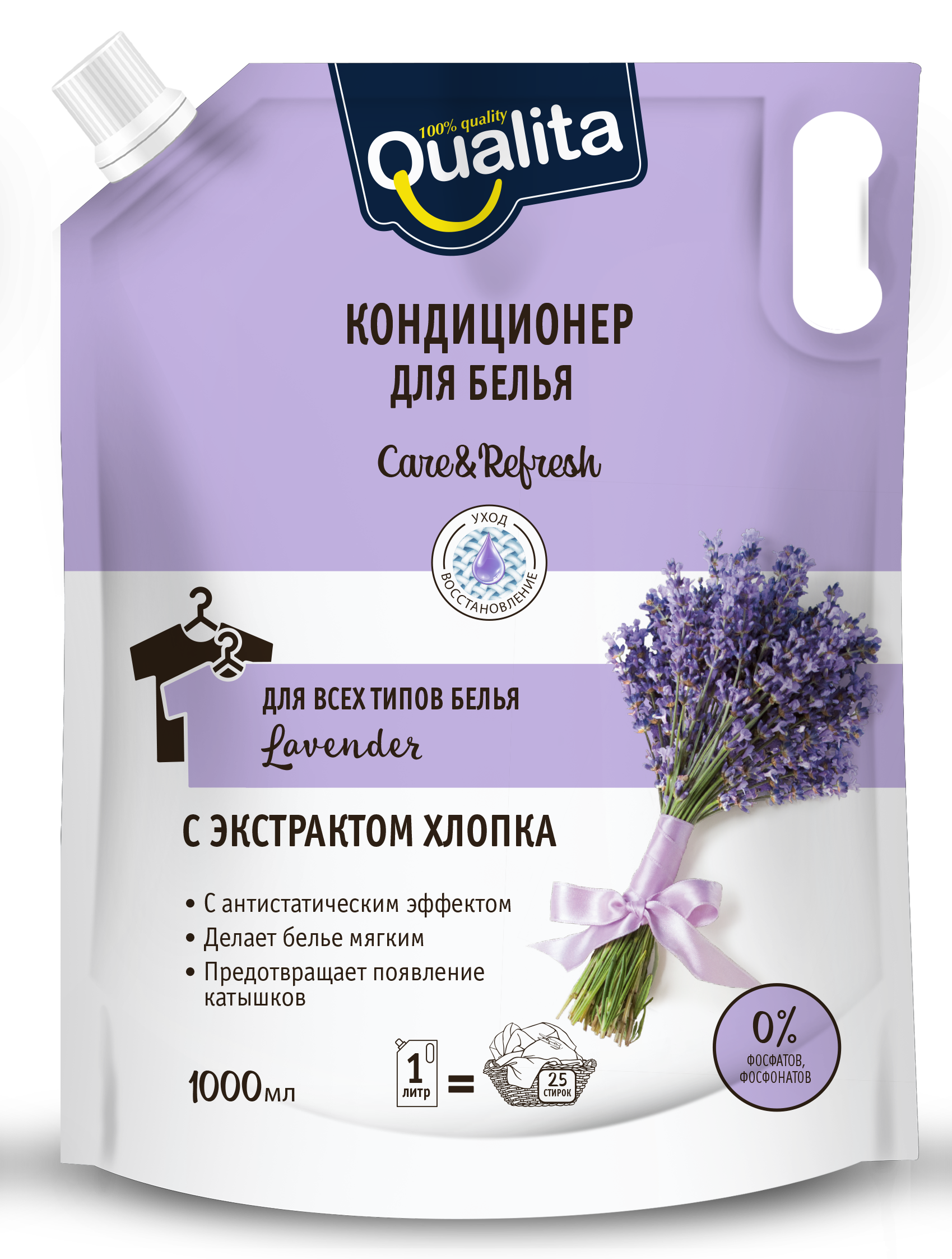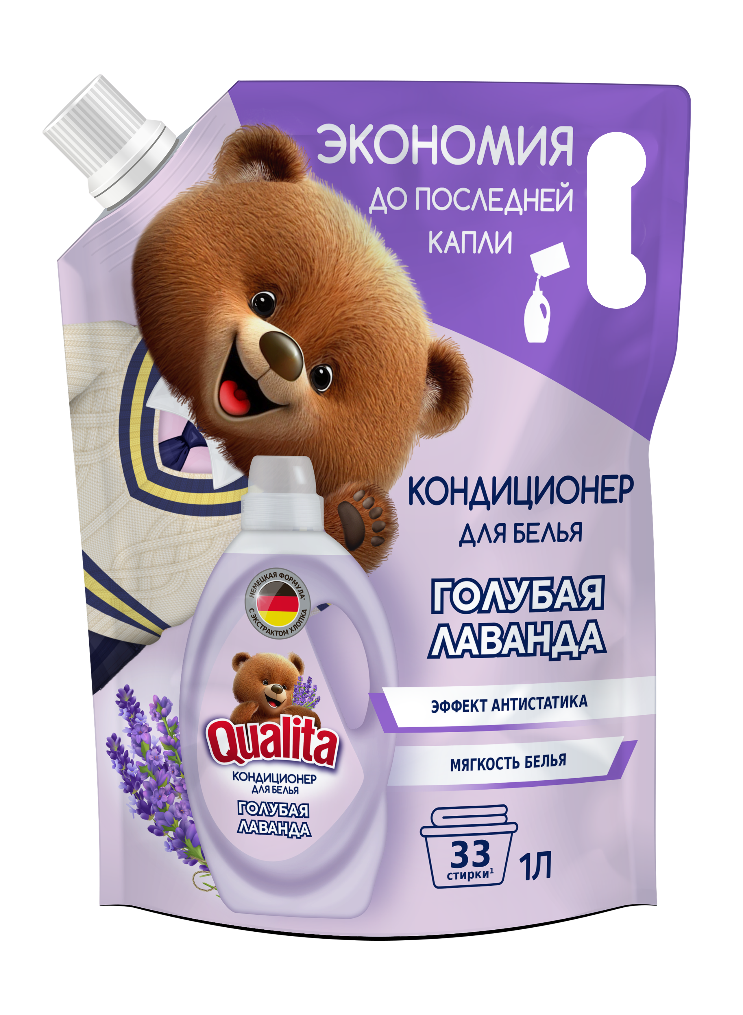 QUALITA Кондиционер для белья Голубая лаванда дой-пак 1л