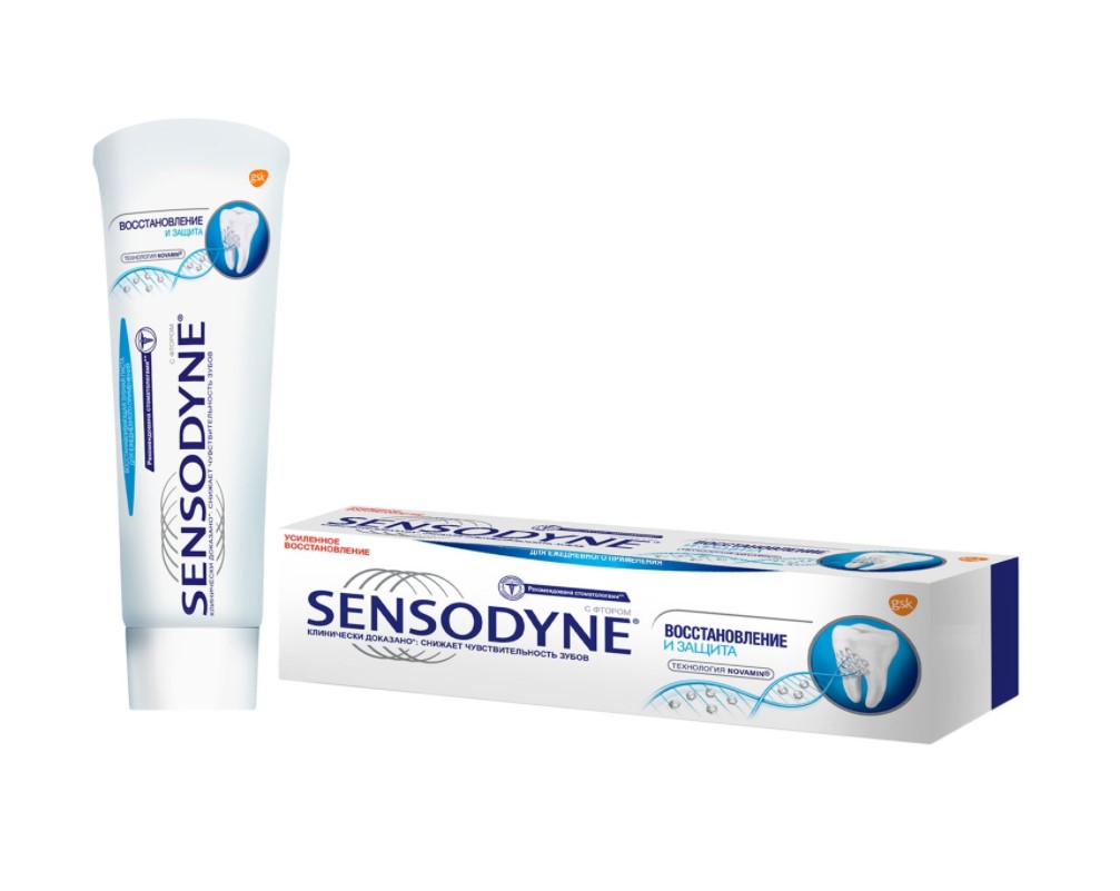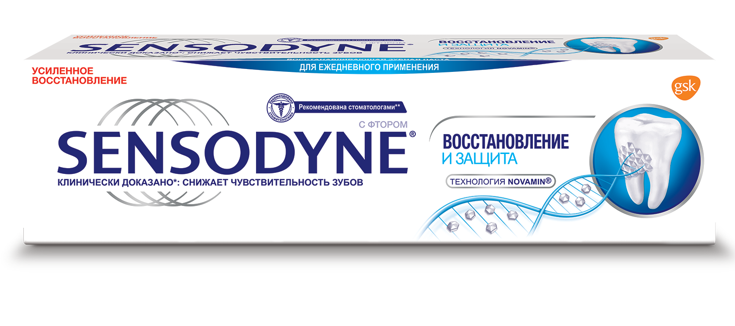 Зубные пасты Sensodyne помогают наслаждаться горячей и холодной едой, которую вы так любите! Зубные пасты Sensodyne помогает обеспечивать длительную защиту чувствительных зубов 1,2 для снижения болезненных ощущений, вызванных повышенной чувствительностьюзубов, а также способствуют профилактике кариеса 1,3 и свежести вашего дыхания. Позаботьтесь о здоровье полости рта вместе с зубной пастой Sensodyne Восстановление и Защита Отбеливающая. Зубная паста Sensodyne Восстановление и Защита Отбеливающая: