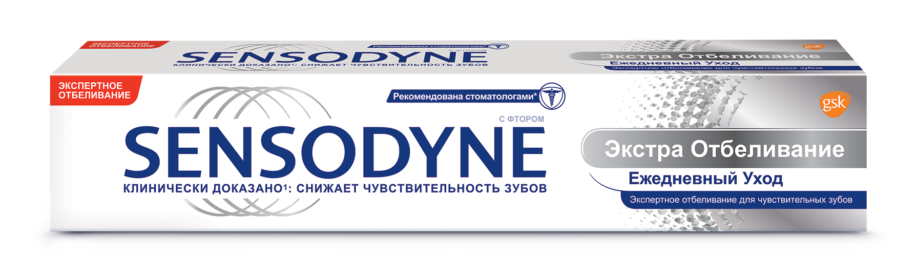 Sensodyne - бренд №1 по рекомендации стоматологов для чувствительных зубов. Зубная паста Sensodyne Экстра Отбеливание эффективно снижает повышенную чувствительность зубов, обеспечивает защиту от чувствительности в течение всего дня, а также помогает удалять потемнения зубной эмали, восстанавливая естественную белизну зубов. При чистке зубов 2 раза в день паста Sensodyne Экстра Отбеливание также защищает от кариеса благодаря содержанию фтора.