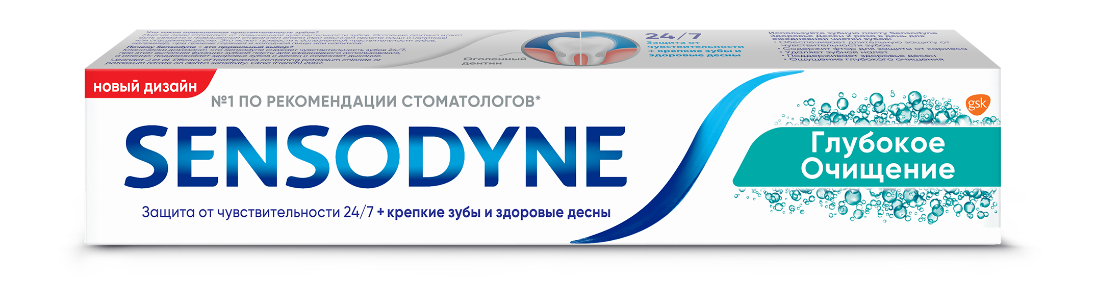 Sensodyne - бренд №1 по рекомендации* стоматологов для чувствительных зубов. Зубная паста Sensodyne Глубокое Очищение способствует длительной защите от повышенной чувствительности зубов, а также эффективно удаляет зубной налет благодаря технологии активного образования пены. При чистке зубов 2 раза в день паста Sensodyne Глубокое Очищение также защищает от кариеса благодаря содержанию фтора.