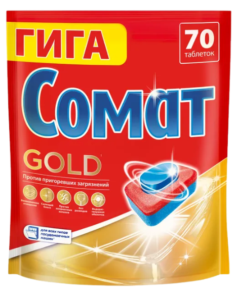 Таблетки для посудомоечной машины Сомат Голд - это лучшая формула Сомат для глубокого очищения! Сомат Голд - наш №1 в линейке Сомат против пригоревших загрязнений! Таблетки Сомат голд расщепляют остатки пищи и удаляют самые трудные загрязнения, обеспечивая ослепительную чистоту посуды.