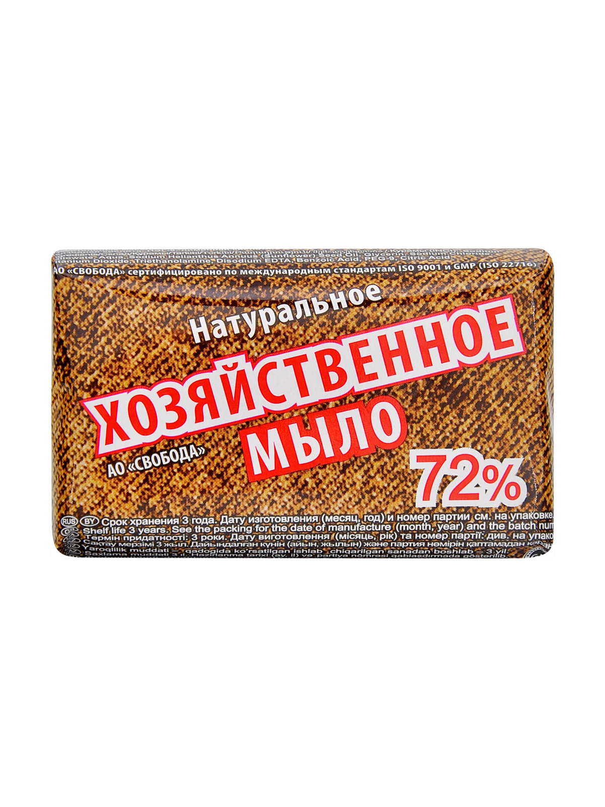 Хозяйственное мыло 72% предназначено для санитарно-гигиенических целей и ручной стирки изделий из всех типов тканей. Высококачественное мыло изготовлено из натурального сырья, обладает высокой моющей способностью, образует обильную пену, не размокает, экономично в употреблении. Не раздражает кожу, не вызывает аллергических реакций, не оказывает вредного воздействия на окружающую среду.