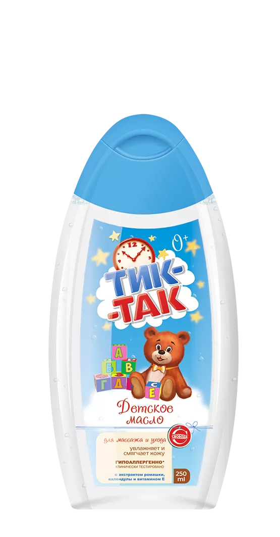 Детское масло для массажа и ухода за кожей Тик-Так - это многофункциональное средство по уходу за чувствительной кожей ребенка с первых дней его жизни.