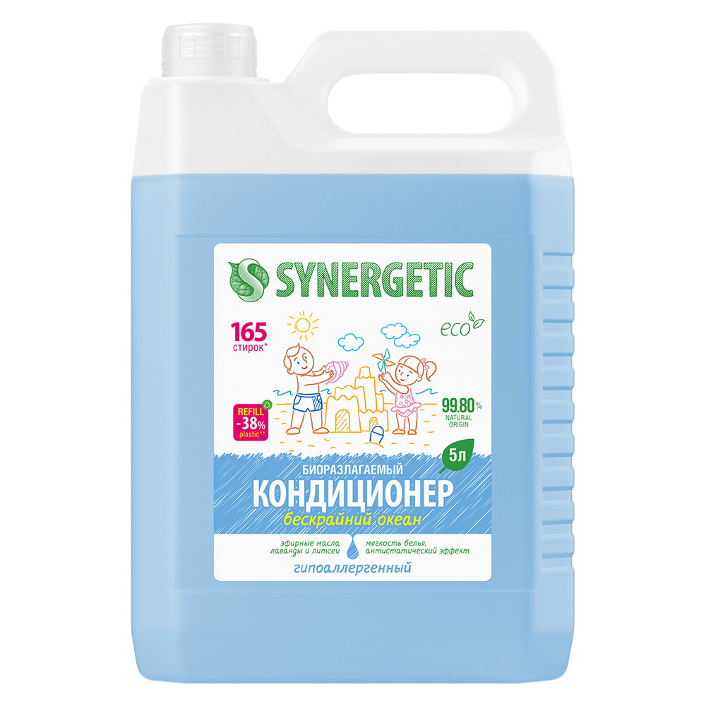 Биоразлагаемый кондиционер-ополаскиватель для белья SYNERGETIC "Бескрайний океан" – высокоэффективное средство, бережно ухаживающее за всеми типами ткани, в том числе деликатными, и придающее особую мягкость и нежность белью после стирки. Гипоаллергенный кондиционер-ополаскиватель нейтрализует остатки средств для стирки на ткани, помогает сохранить структуру ткани, защищая волокна от изнашивания и повреждения. Средство обладает антистатическим эффектом. Комплекс растительных К-тензидов обеспечивает легкую глажку белья после стирки и высыхания. Гипоаллергенная парфюмерная композиция с эфирными маслами лаванды и литсеи придает белью нежный и приятный аромат. Подходит для ручной и машинной стирки, полностью выполаскивается из тканей. Биоразлагаемые компоненты не вредят микрофлоре септических установок.