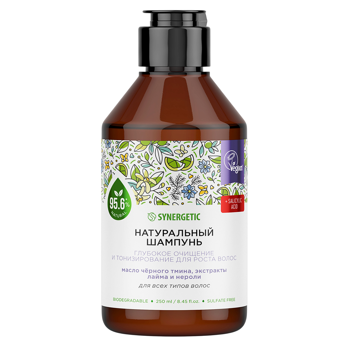 SYNERGETIC Шампунь бессульфатный Глубокое очищение и тонизирование 250мл
