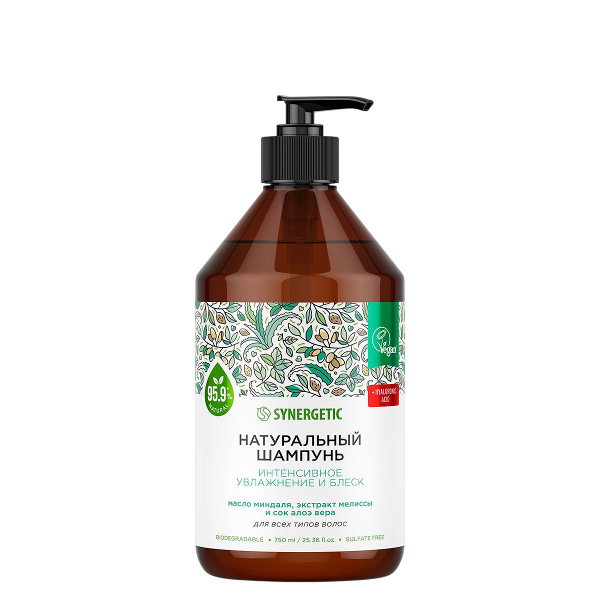 SYNERGETIC Шампунь бессульфатный Интенсивное увлажнение и блеск 750мл