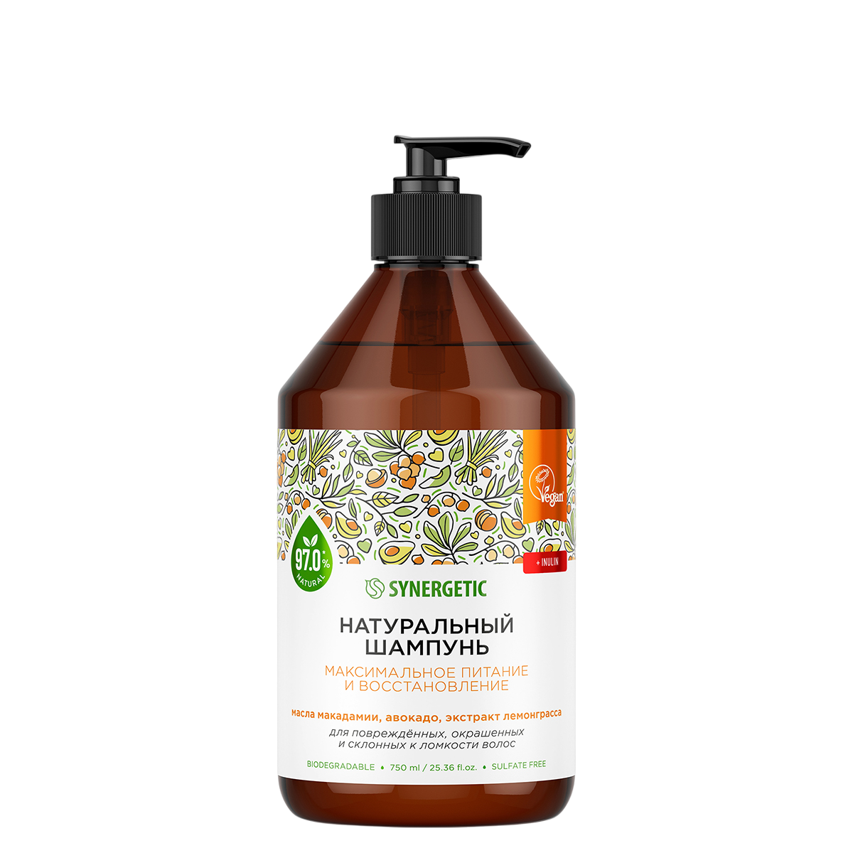 SYNERGETIC Шампунь бессульфатный Максимальное питание и восстановление 750мл