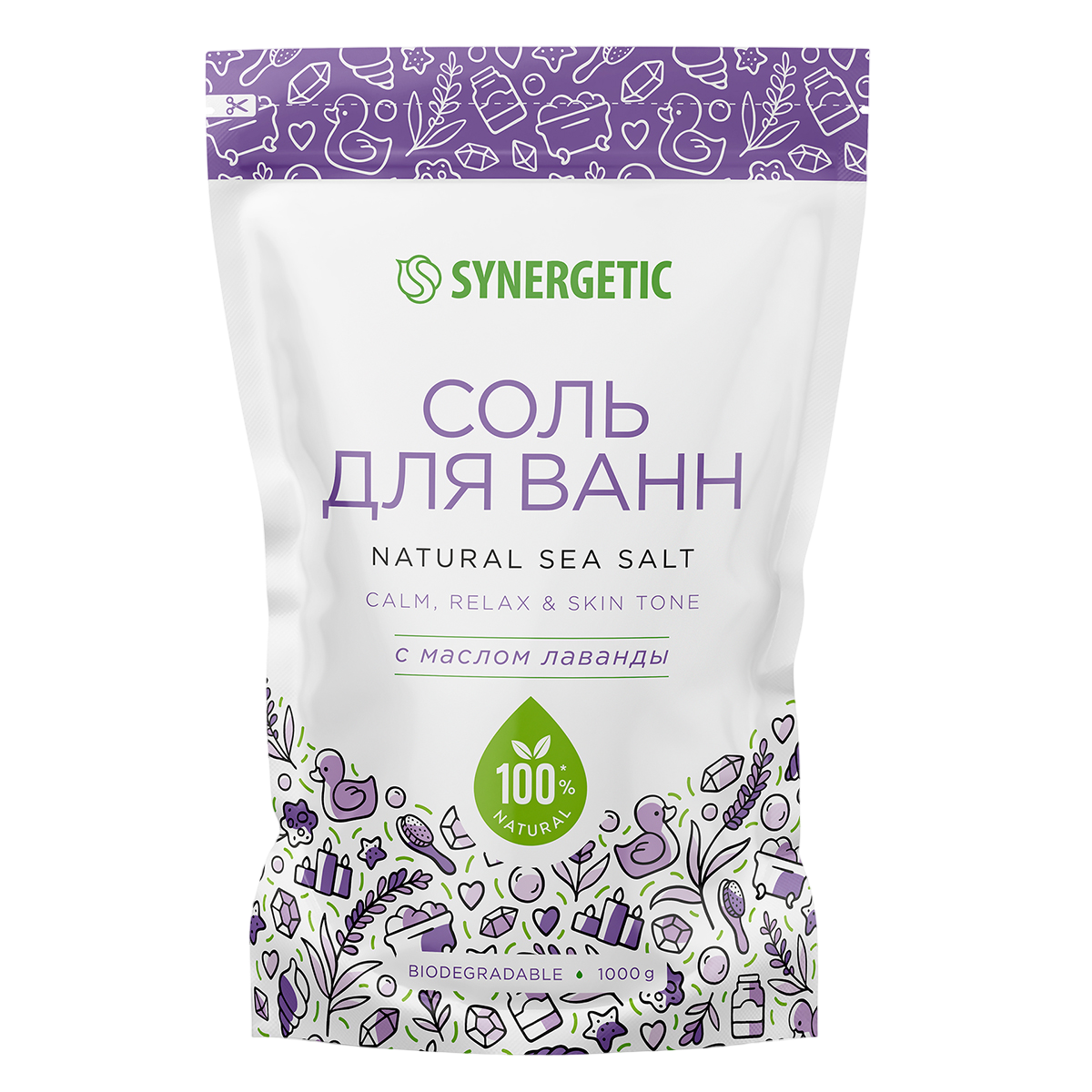 SYNERGETIC Соль д/ванн с маслом лаванды 1000г