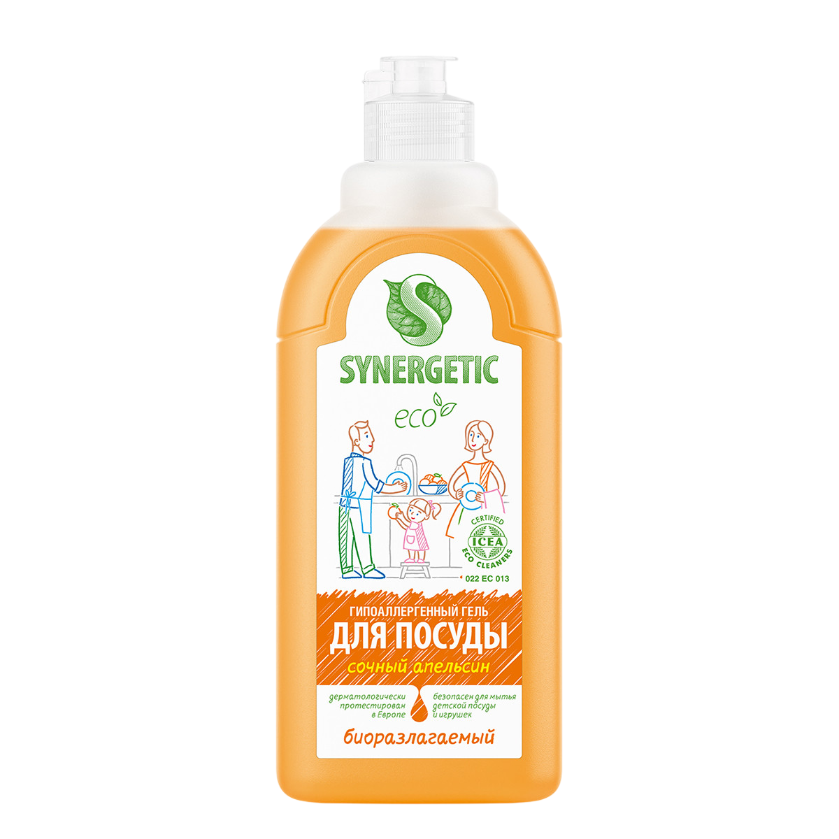 SYNERGETIC Средство д/мытья посуды, игрушек Апельсин 500мл