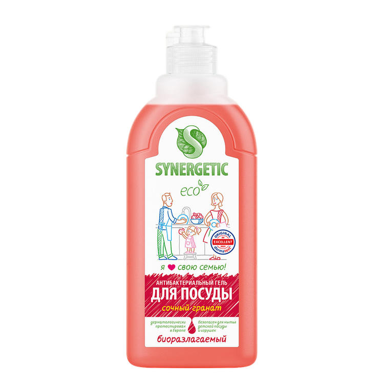 SYNERGETIC Средство д/мытья посуды, игрушек Гранат 500мл