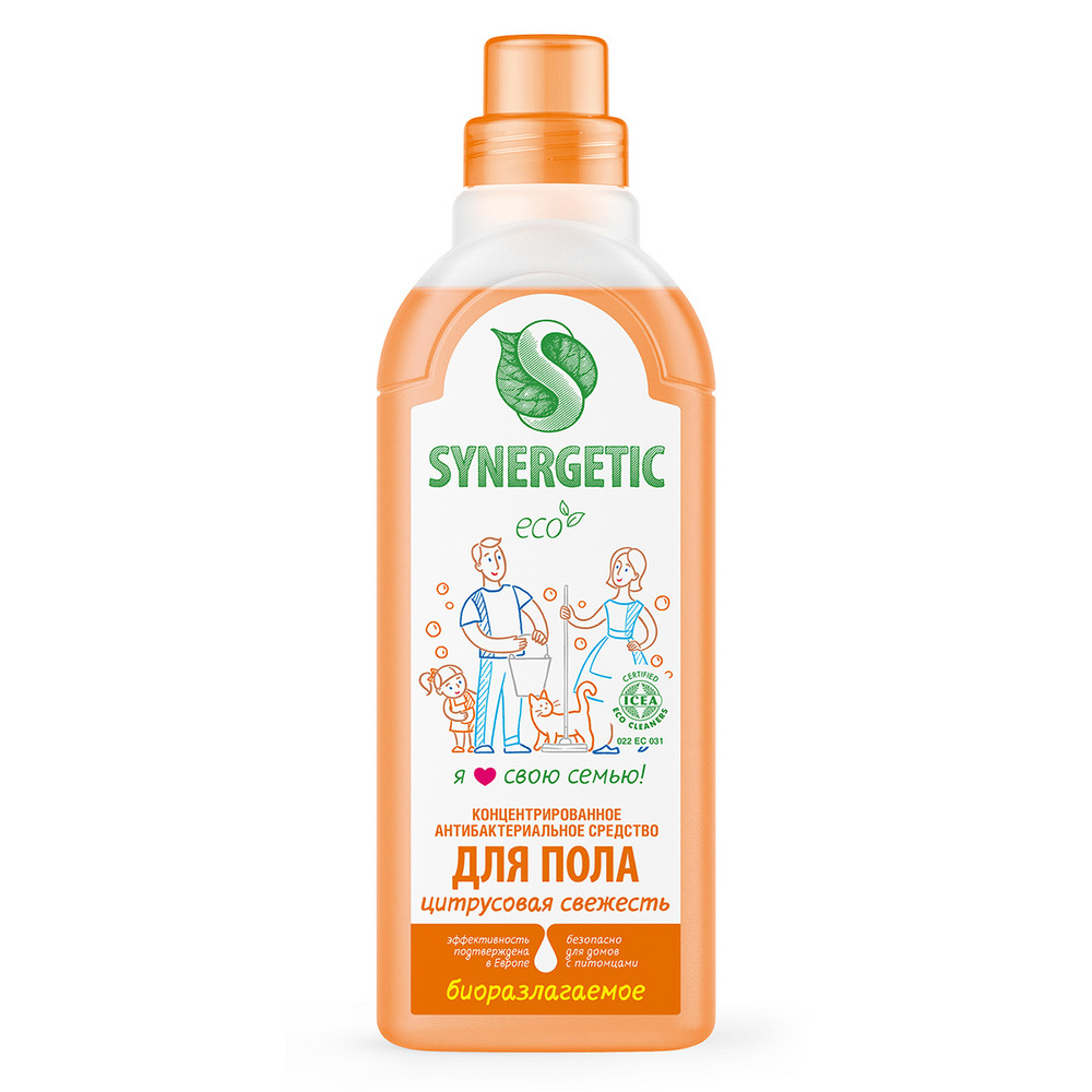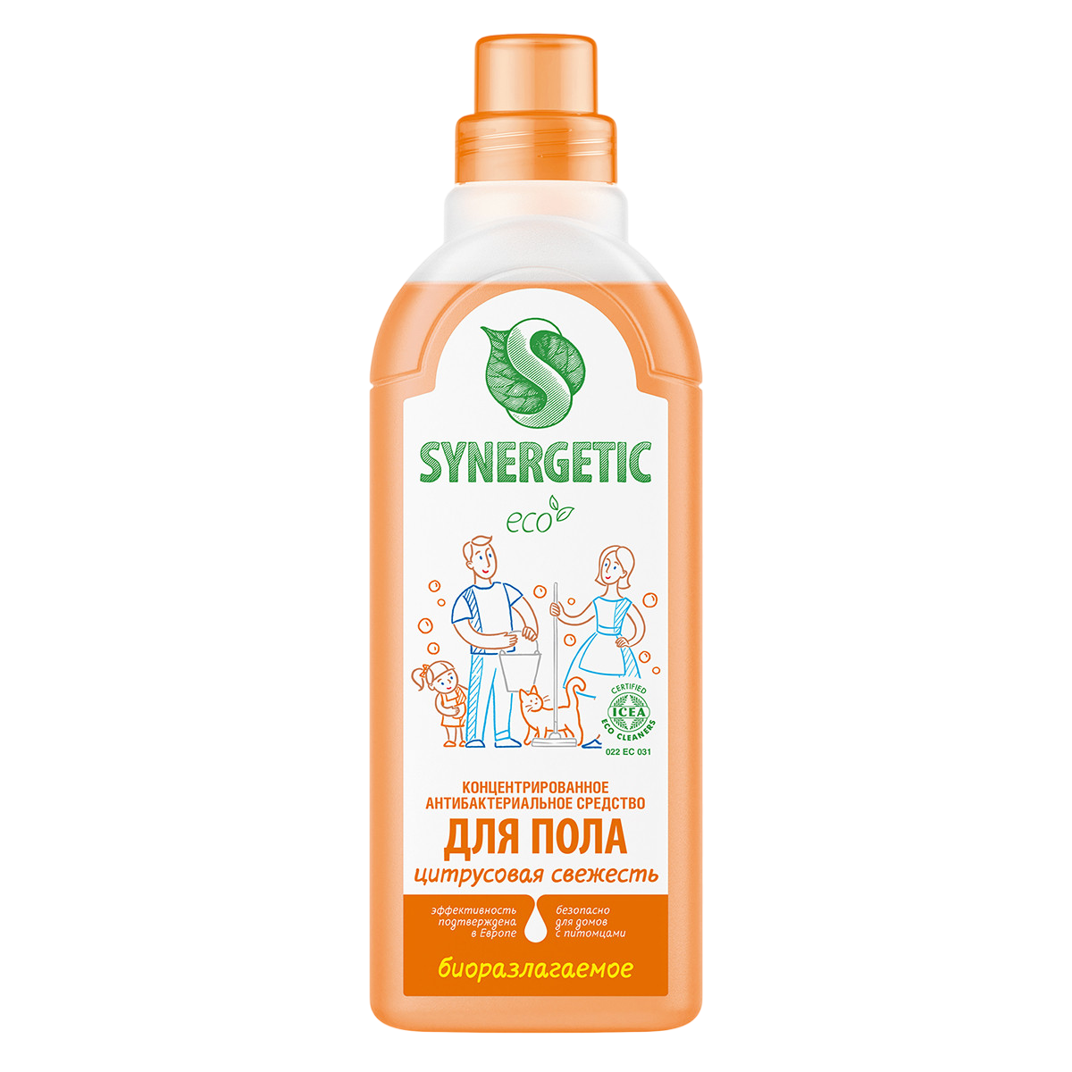 Биоразлагаемое концентрированное средство с антибактериальным эффектом SYNERGETIC "Цитрусовая свежесть" - универсальное средство для ежедневной и генеральной уборки пола и других поверхностей: столов, стен, потолка. Уникальный комплекс растительных тензидов эффективно удаляет загрязнения и неприятные запахи даже в холодной воде. Комплекс зеленых хелатов предотвращает повторное оседание загрязнений на поверхности. Подходит для паркета, ламината, плитки, линолеума, металла, стекла, пластика, дерева. Гипоаллергенная парфюмерная композиция на основе эфирных масел лимона, петитгрейна, лайма и лемонграсса оставляет легкий и приятный аромат. Международный экологический сертификат ICEA подтверждает биоразлагаемость, безопасность и эффективность средства. Оно не требует смывания, не оставляет разводов на поверхности, подходит для уборки в детских комнатах и учреждениях, а также безопасно для домов с питомцами.