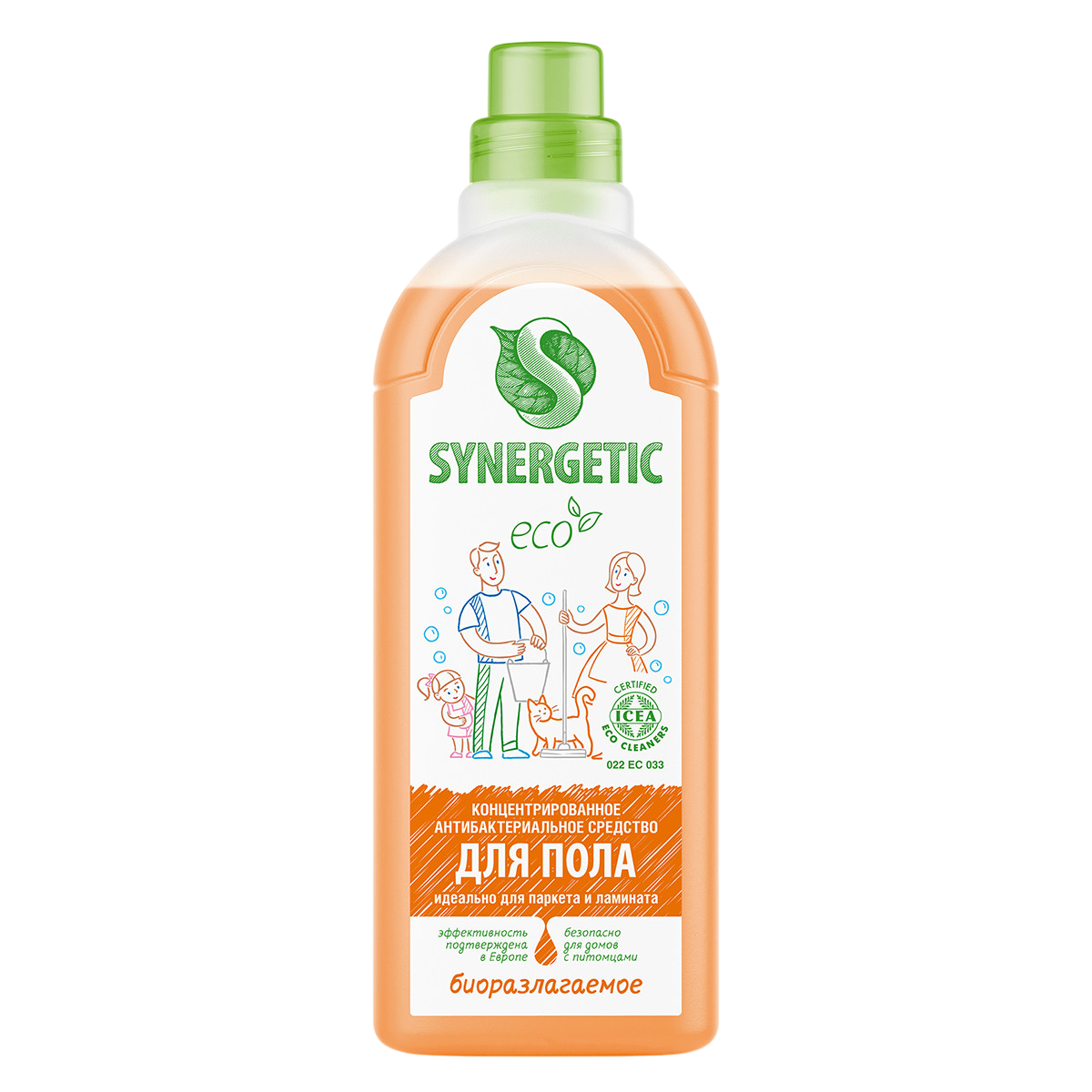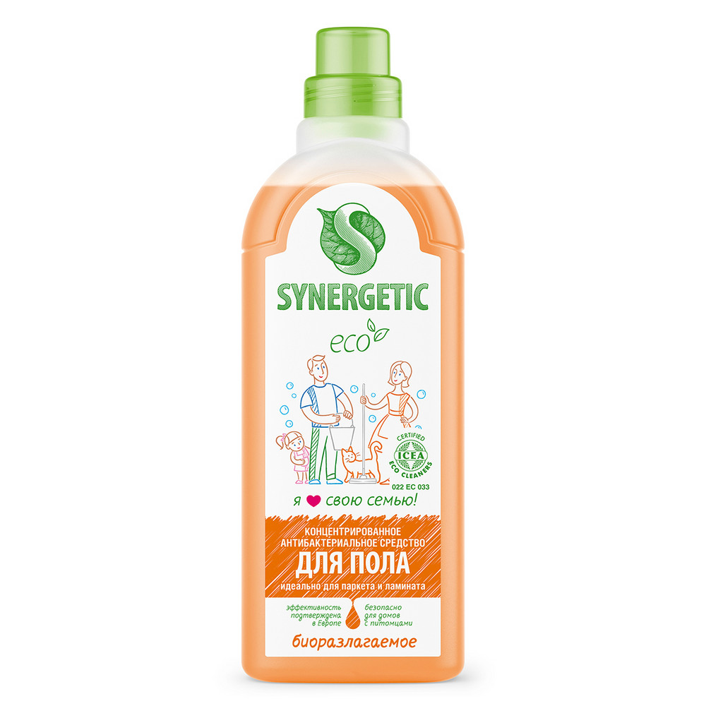 Биоразлагаемое концентрированное средство с антибактериальным эффектом SYNERGETIC - универсальное средство для ежедневной и генеральной уборки пола и других поверхностей: столов, стен, потолка. Уникальный комплекс растительных тензидов эффективно удаляет загрязнения и неприятные запахи даже в холодной воде. Комплекс зеленых хелатов предотвращает повторное оседание загрязнений на поверхности. Подходит для паркета, ламината, плитки, линолеума, металла, стекла, пластика, дерева. Гипоаллергенная парфюмерная композиция на основе эфирных масел сантала, бергамота, мяты и лимона оставляет легкий и приятный аромат. Международный экологический сертификат ICEA подтверждает биоразлагаемость, безопасность и эффективность средства. Оно не требует смывания, не оставляет разводов на поверхности, подходит для уборки в детских комнатах и учреждениях, а также безопасно для домов с питомцами.