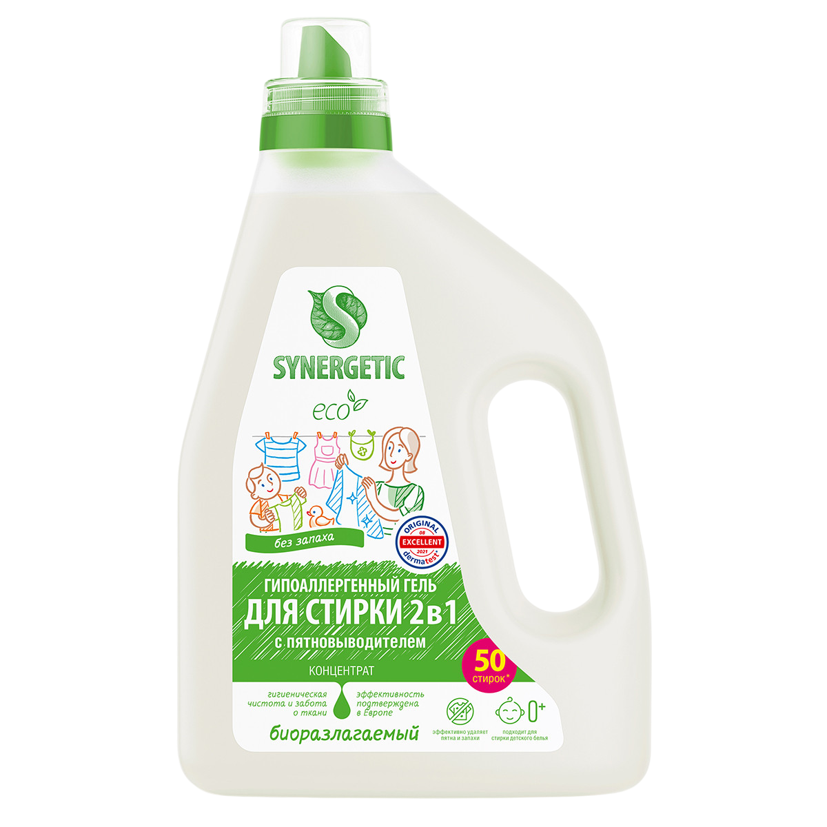 SYNERGETIC Средство д/стирки универсальный гипоаллергенный гель 1,5л