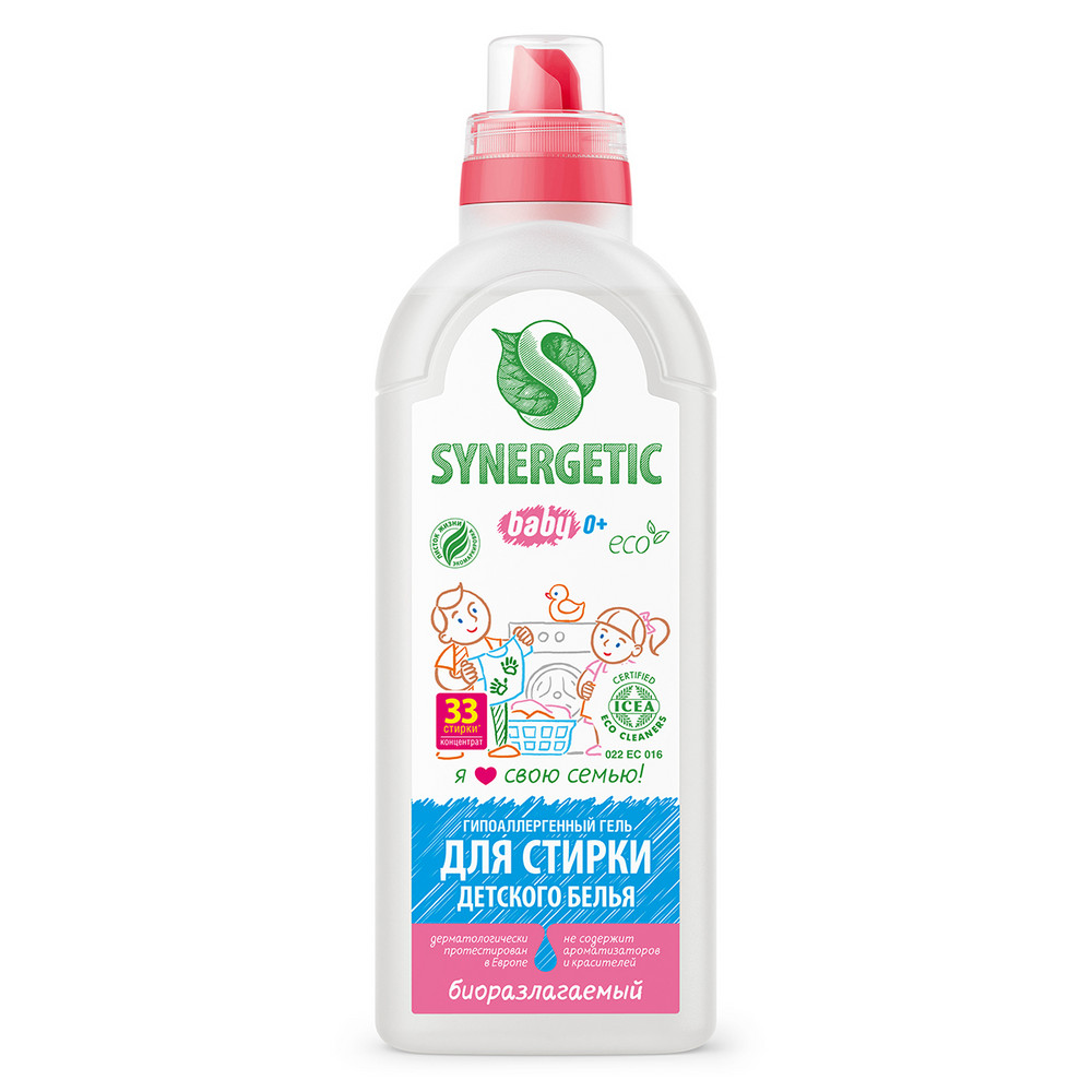 Биоразлагаемый концентрированный гель для стирки SYNERGETIC для детского белья обеспечивает бережное и эффективное очищение тканей и устраняет неприятные запахи. Уникальный комплекс растительных тензидов и зеленых хелатов эффективно удаляет загрязнения и свежие пятна с волокон ткани даже в холодной воде. Функциональные добавки предотвращают окрашивание, а также повторное оседание загрязнений на ткани, сохраняя ее первоначальный вид, насыщенность цвета, прочность и структуру. Гель предназначен для стирки цветного и белого белья из натуральных и синтетических тканей, для детского белья 0+ и одежды людей с чувствительной кожей. Средство можно использовать в стиральных машинах любого типа и при ручной стирке при температуре 20 - 90 °C. Биоразлагаемый гель полностью выполаскивается из тканей.