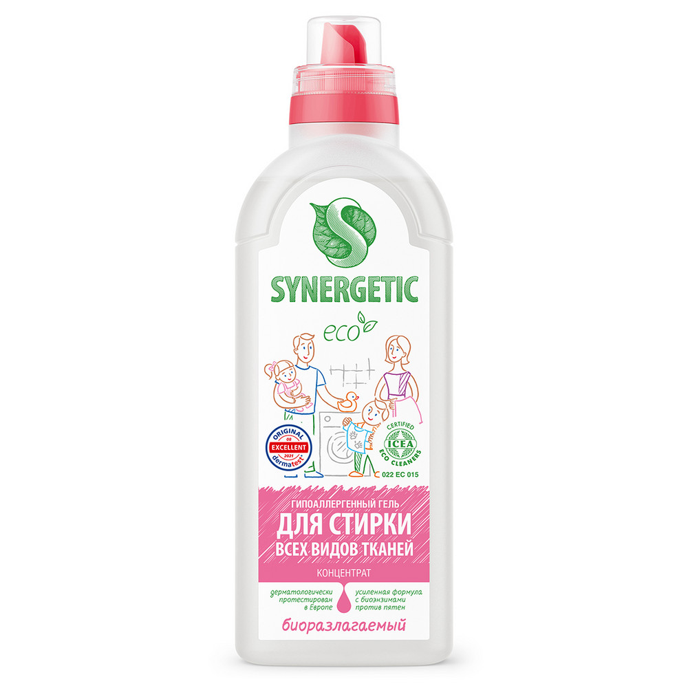 Биоразлагаемый концентрированный гель для стирки SYNERGETIC универсальный обеспечивает бережное и эффективное очищение тканей, гигиеническую чистоту одежды и устраняет неприятные запахи. Комбинация энзимов и растительных ПАВ эффективно удаляет загрязнения и свежие пятна с волокон ткани даже в холодной воде. Функциональные добавки предотвращают окрашивание, а также повторное оседание загрязнений на ткани, сохраняя ее первоначальный вид, насыщенность цвета, прочность и структуру. Гипоаллергенная отдушка на основе эфирных масел оставляет легкий и приятный аромат. Гель предназначен для стирки всех видов тканей, кроме деликатных и мембранных, а также шерсти и шелка. Средство можно использовать в стиральных машинах любого типа и при ручной стирке при температуре 15 - 90 °C. Биоразлагаемый гель полностью выполаскивается из тканей, подходит для стирки детского белья 0+ и одежды людей с чувствительной кожей.
