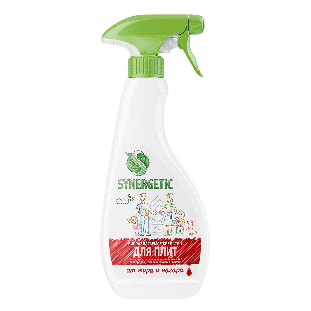 Биоразлагаемое средство для плит от жира и нагара SYNERGETIC - высокоэффективное щелочное средство для удаления жира, нагара, копоти, масляных пятен и накипи с плит и других кухонных поверхностей. Комплекс биоразлагаемых растительных тензидов и соды справляется с органическими загрязнениями за считанные минуты. Кальцинированная сода создает необходимую для расщепления пятен щелочную среду и растворяет масложировые компоненты загрязнений. Средство подходит для металлических, стеклокерамических, эмалированных плит и поверхностей, сковородок, противней, кастрюль, шампуров, решёток-гриль, пароконвектоматов, микроволновых печей, духовых шкафов, каменных столешниц, керамической плитки. Средство устраняет неприятные запахи, эффективно даже в холодной воде, полностью смывается, не оставляя разводов и царапин. Оно подходит для уборки в детских учреждениях, а также безопасно для септических установок. Попадая в среду септика, средство "понятно" для микроорганизмов и без труда распадается на простые соединения.