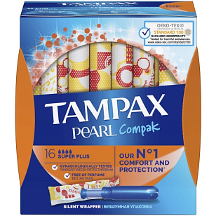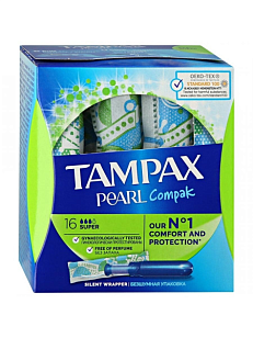 Компактные тампоны Tampax Compak Super обеспечивают надежную защиту при умеренных и интенсивных менструальных выделениях. Тампоны Tampax Compak имеют гладкий и компактный пластмассовый аппликатор и закругленный кончик для комфортного введения. Впитывающие желобки направляют жидкость внутрь тампона, а защитная юбочка помогает предотвратить протекания, избавляя от беспокойства во время менструации. Тампоны обеспечивают надежную защиту без протеканий и дарят полную свободу действий. Лучшие тампоны из линии Tampax Compak при умеренных и интенсивных выделениях. Преимущества: Компактные тампоны Tampax Compak обеспечивают надежную защиту