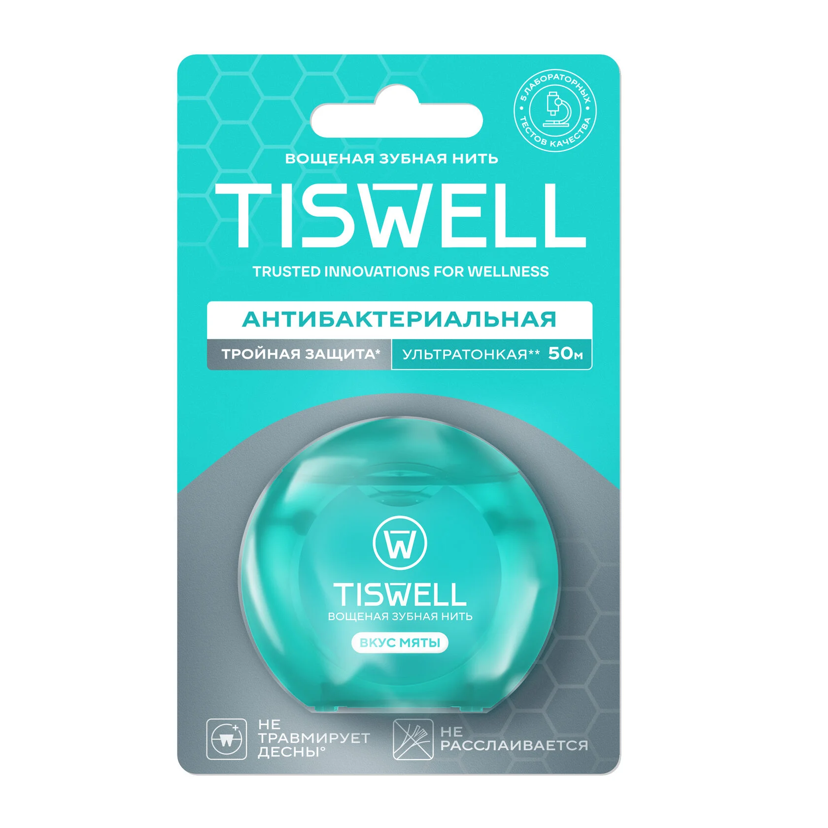 TISWELL Зубная нить вощеная Мятная 50м
