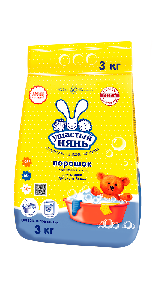 Порошок предназначен для стирки детских изделий, в том числе новорожденных, из хлопчатобумажных, льняных, синтетических тканей, а также тканей из смешанных волокон (кроме изделий из натурального шелка и шерсти) в автоматических стиральных машинах и ручной стирки.