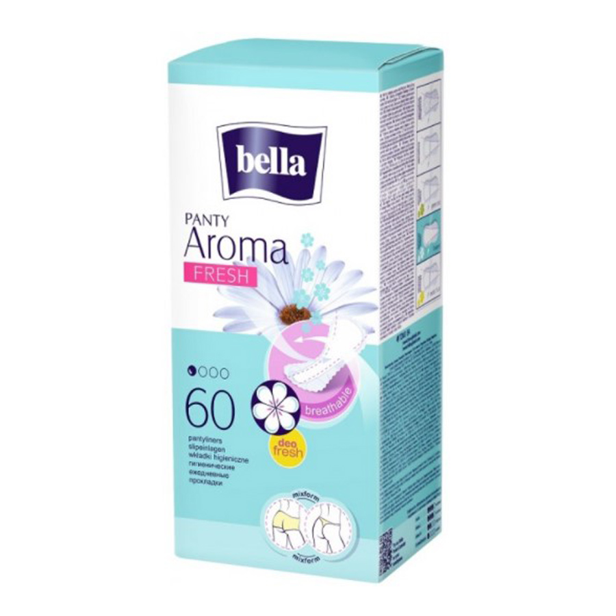 Bella Гигиенические ежедневные прокладки Panty aroma fresh 60 шт. - экстратонкие, толщиной всего 1 мм, ежедневные прокладки с нежным цветочным ароматом. Впитываемость 1к.
