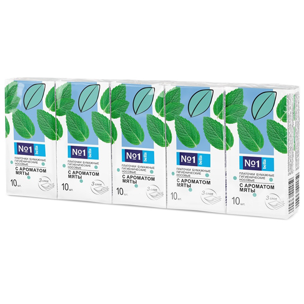 Bella Платочки носовые 3-слойные с ароматом мяты 10шт (Спайка 10шт)