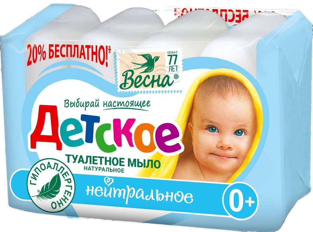 Весна Детское Туалетное мыло Нейтральное 4х75г