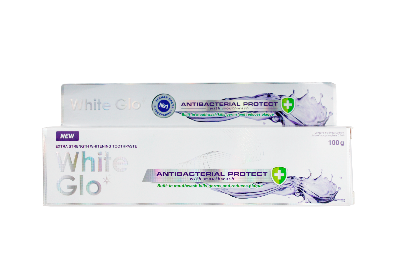 WHITE GLO Зубная паста отбеливающая Antibacterial Protect 100г