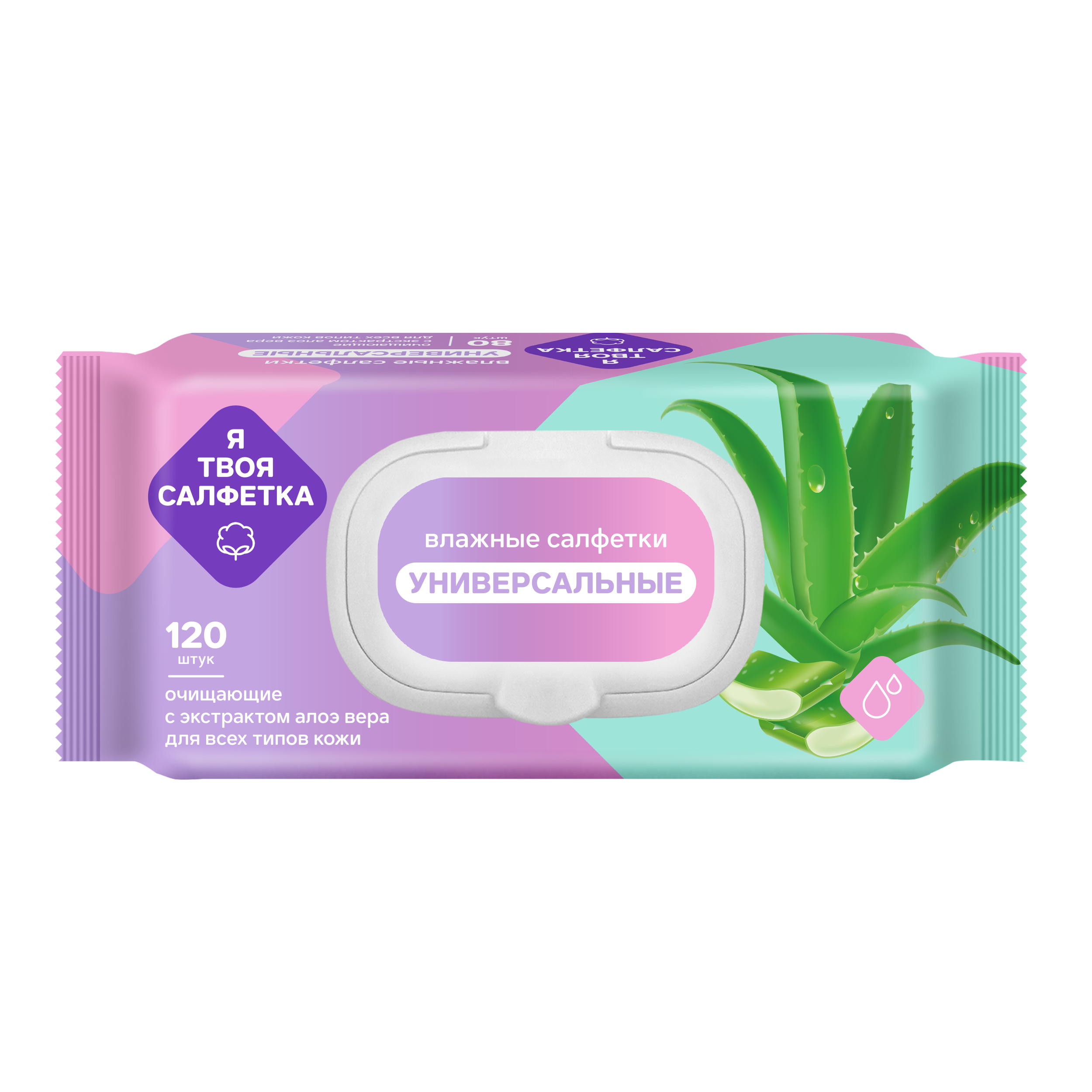 Я твоя салфетка Салфетки влажные очищающие универсальные с алоэ вера с клапаном 120шт*