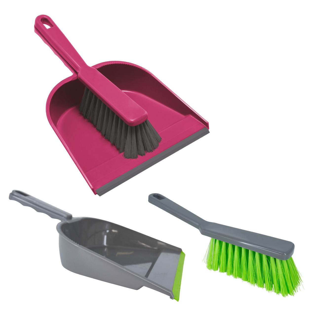Классический набор щетка-сметка и совок с резинкой. Набор изготовлен из прочного пластика. Совок оснащен резинкой, которая обеспечивает максимальное прилегание к поверхности, что облегчает сбор мелкого мусора. Резинка "впаяна" в совок, не выпадает и не отклеивается. Щетка имеет мягкую щетину и надежно крепится к совку с помощью системы "Клик". У комплекта имеется отверстие для хранения в подвешенном состоянии. Набор прослужит долгое время.