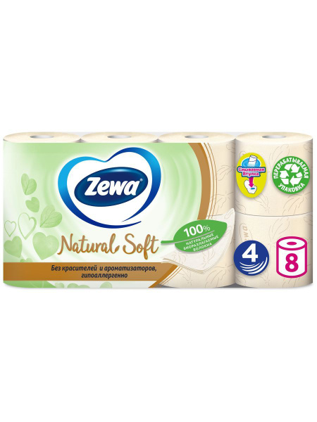 ZEWA Natural Soft Туалетная бумага 4-cлойная 8шт