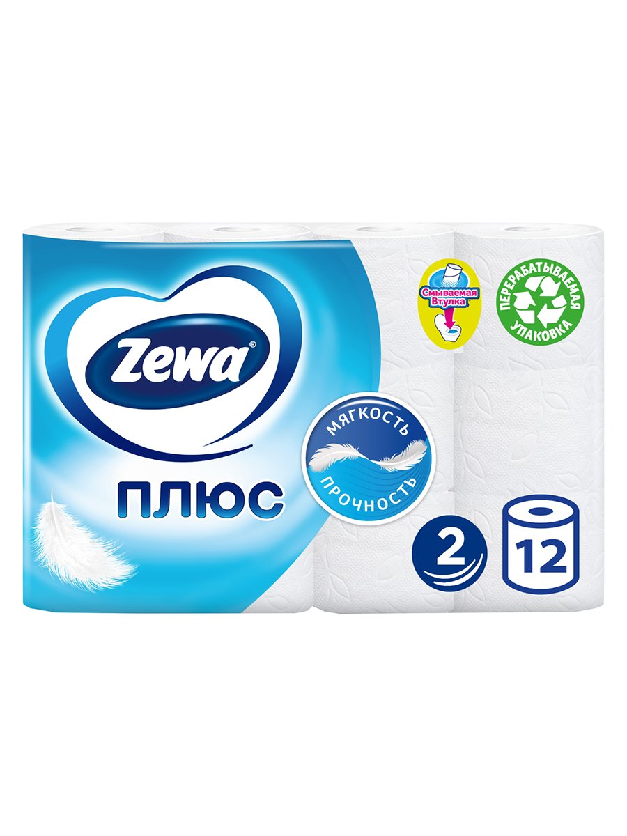 ZEWA Plus Туалетная бумага 2-слойная Белая 12шт