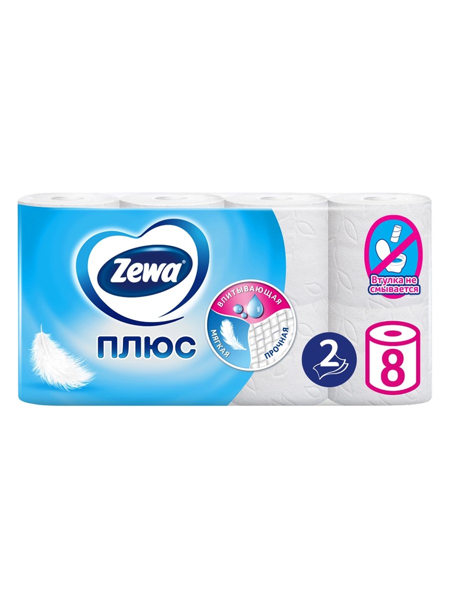 ZEWA Plus Туалетная бумага 2-слойная Белая 8шт