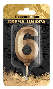 ND PLAY Свеча-цифра на шпажке Золотой песок (цифра 6) блистер