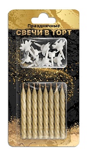 ND PLAY Винтовые свечи в торт с насадками Золотой песок 8шт блистер