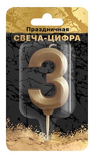 ND PLAY Свеча-цифра на шпажке Золотой песок (цифра 3) блистер