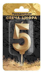 ND PLAY Свеча-цифра на шпажке Золотой песок (цифра 5) блистер