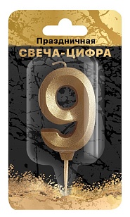 ND PLAY Свеча-цифра на шпажке Золотой песок (цифра 9) блистер